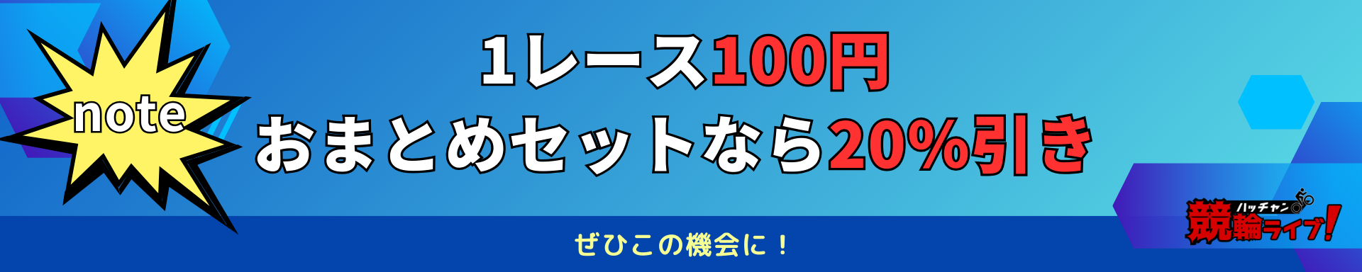 今なら、1レース100円!更に、おまとめセットなら20%引きで1レース80円でご購入いただけます。