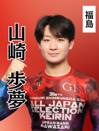 山崎歩夢選手プロフィール S級2班 北日本 福島県 ホームバンク いわき平競輪場 脚質 逃 身長 176.0㌢ 体重 80.0㌔ 生年月日 2005/03/25 年齢 20 卒業期 123期 血液型 A 関係選手 山崎芳仁(師匠) 山崎司(縁故) – 年度 1着 2着 3着 以降 出走 回数 優勝 回数 勝率 2連率 3連率 2025 28 5 1 10 44 7 63.6% 75.0% 77.3% 2024 15 2 0 3 20 4 75.0% 85.0% 85.0% ※2025年10月28日現在 ※各バンク特性はこちら